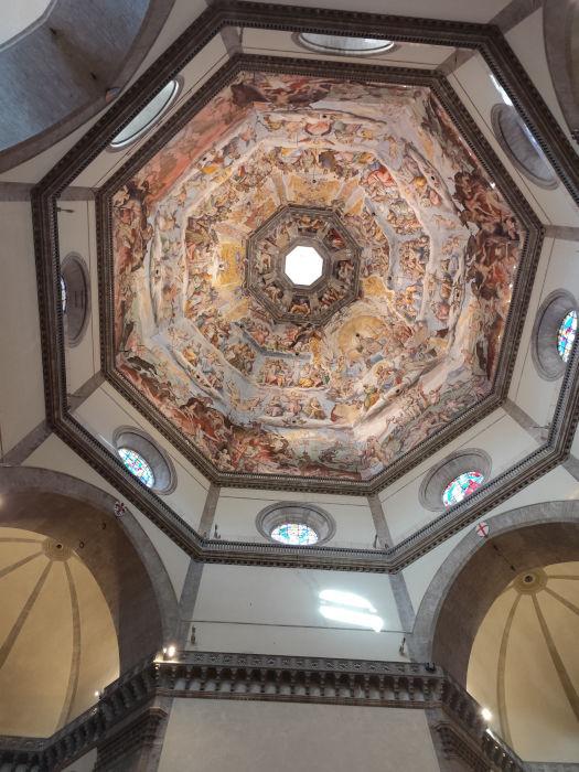 Wnętrze katedry wywołuje chyba jeszcze większy zachwyt. Znajdziemy tam znakomite dzieła włoskich mistrzów, takie jak freski: Sąd Ostateczny Giorgio Vasariego (1511-1574), Pomnik Konny Sir Johna Hawkwooda – Paola Uccella (1397- 1475); Dante i trzy królestwa, autorstwa Domenico di Michelino (1417-1491). Kiedy siedzi się ponad sto metrów pod wieńczącą kopułę latarnią, trudno oderwać wzrok od tych malowideł, oświetlanych w finezyjny sposób przez toskańskie słońce.